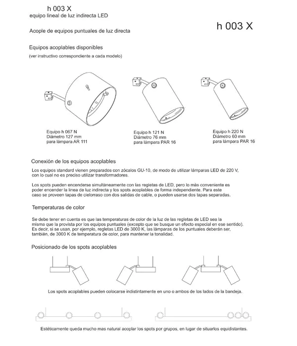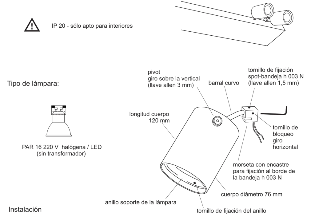 Cabezal Proyector GU10, acoplable a bandejas H003, deslizante, para lampara Dicroica (No la Incluye)