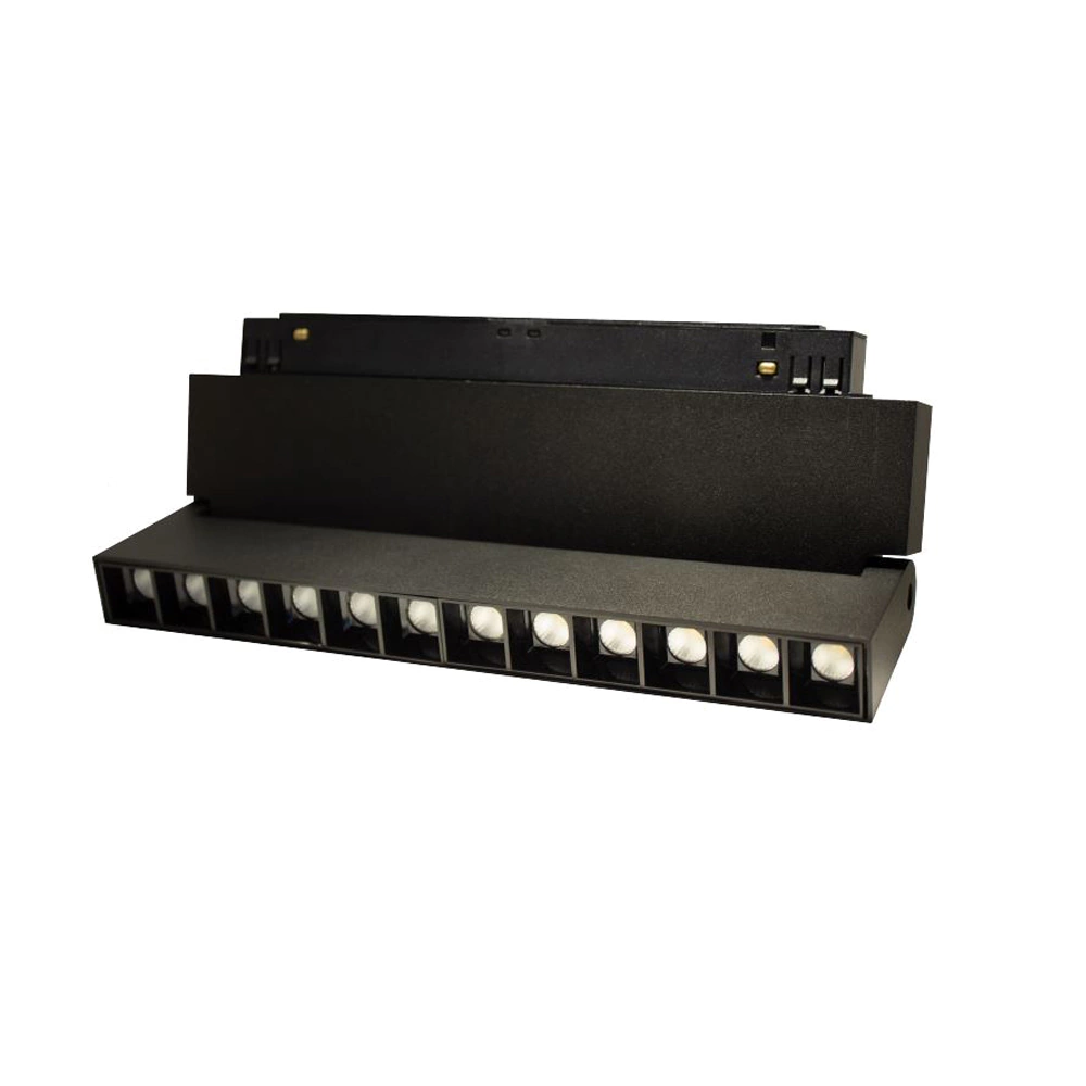 Aplique Grille Mov, es un artefacto diseñado exclusivamente para el sistema de Riel Magnético, el mismo permite la adaptación de múltiples artefactos con una encastración sencilla y dinámica, pudiendo ser utilizados como empotrables, aplicados o suspendidos.