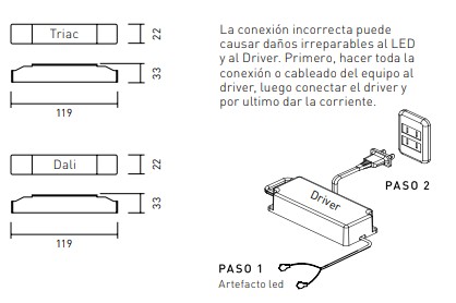 *La conexión incorrecta puede causar daños irreparables al LED y al Driver. Primero, hacer toda la conexión o cableado del equipo al driver, luego conectar el driver y por ultimo dar la corriente*