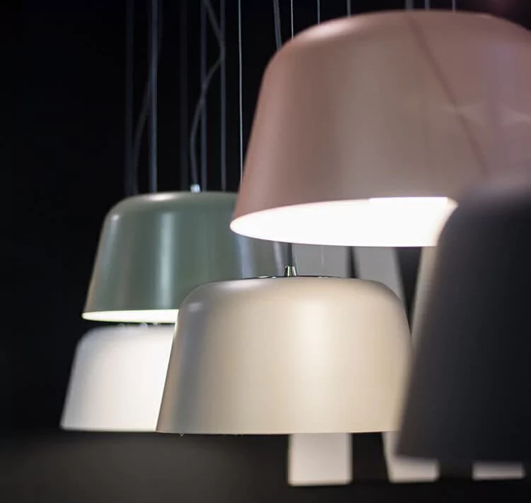 Lámpara colgante de hierro pintado en horno con detalle superior y florón metalico a techo cromado.