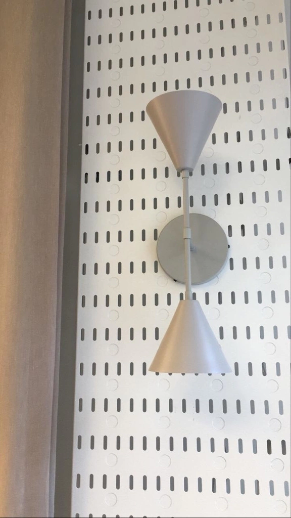 Aplique simétrico de pared o techo con doble pantalla. Puede colocarse de forma horizontal o vertical.
