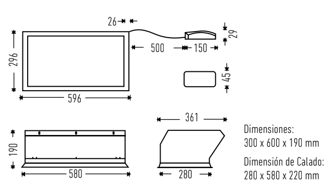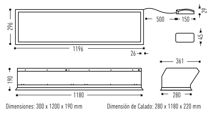 Luminaria Cielo con LED integrado para embutir. Incorpora control Smart mediante app Tuya. Cuenta con luz directa asimétrica (haz inclinado 45°)
