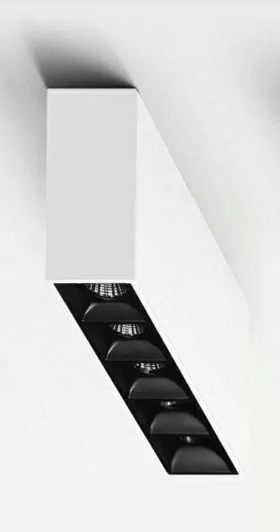 Artefacto de iluminación para aplicar. Driver dimerizable incluido. Cuerpo de aluminio y reflector de policarbonato.