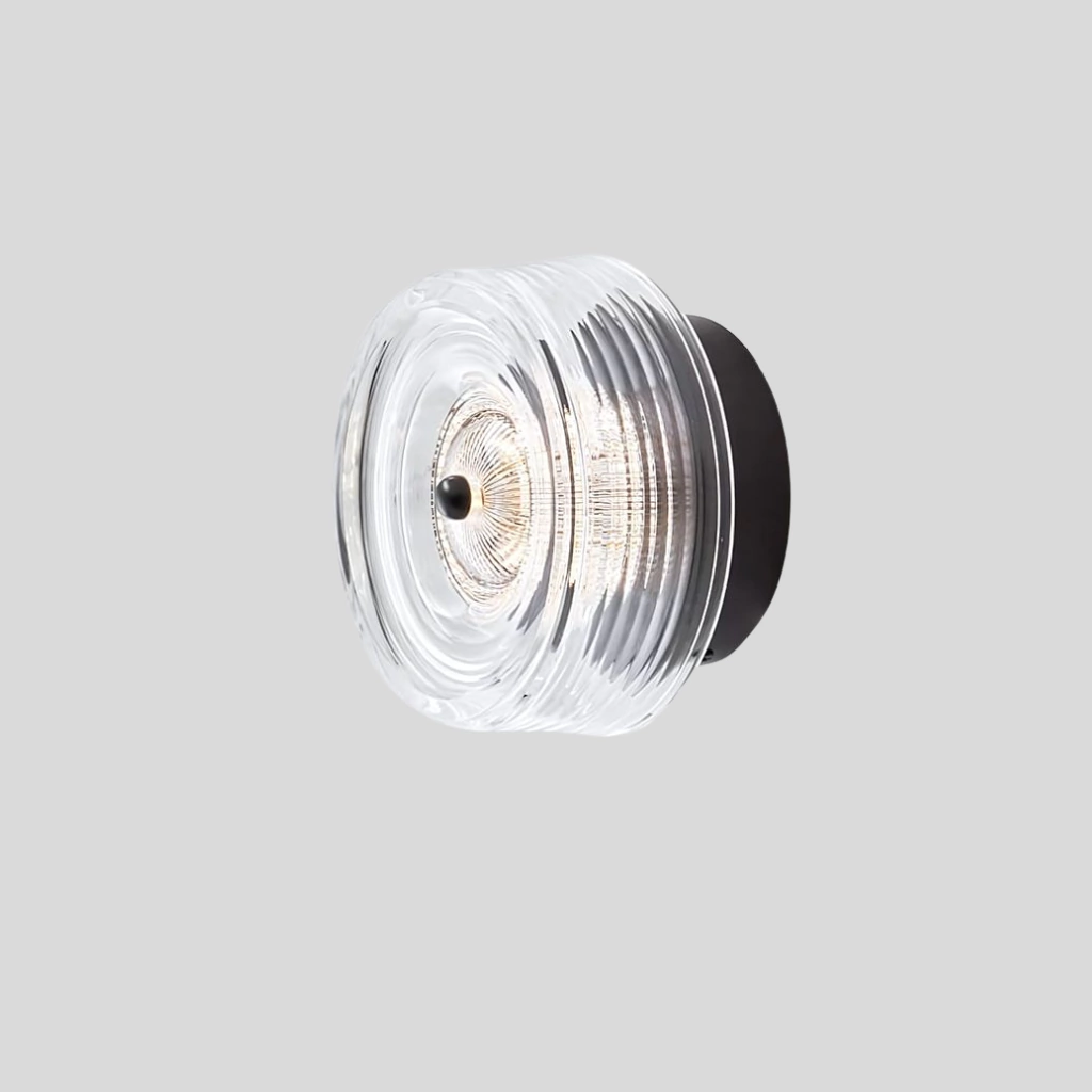 Aplique de pared en acrílico, con diseño de líneas concéntricas que aporta una estética moderna y sutilmente decorativa. Ideal para pasillo, dormitorios o como luz auxiliar.