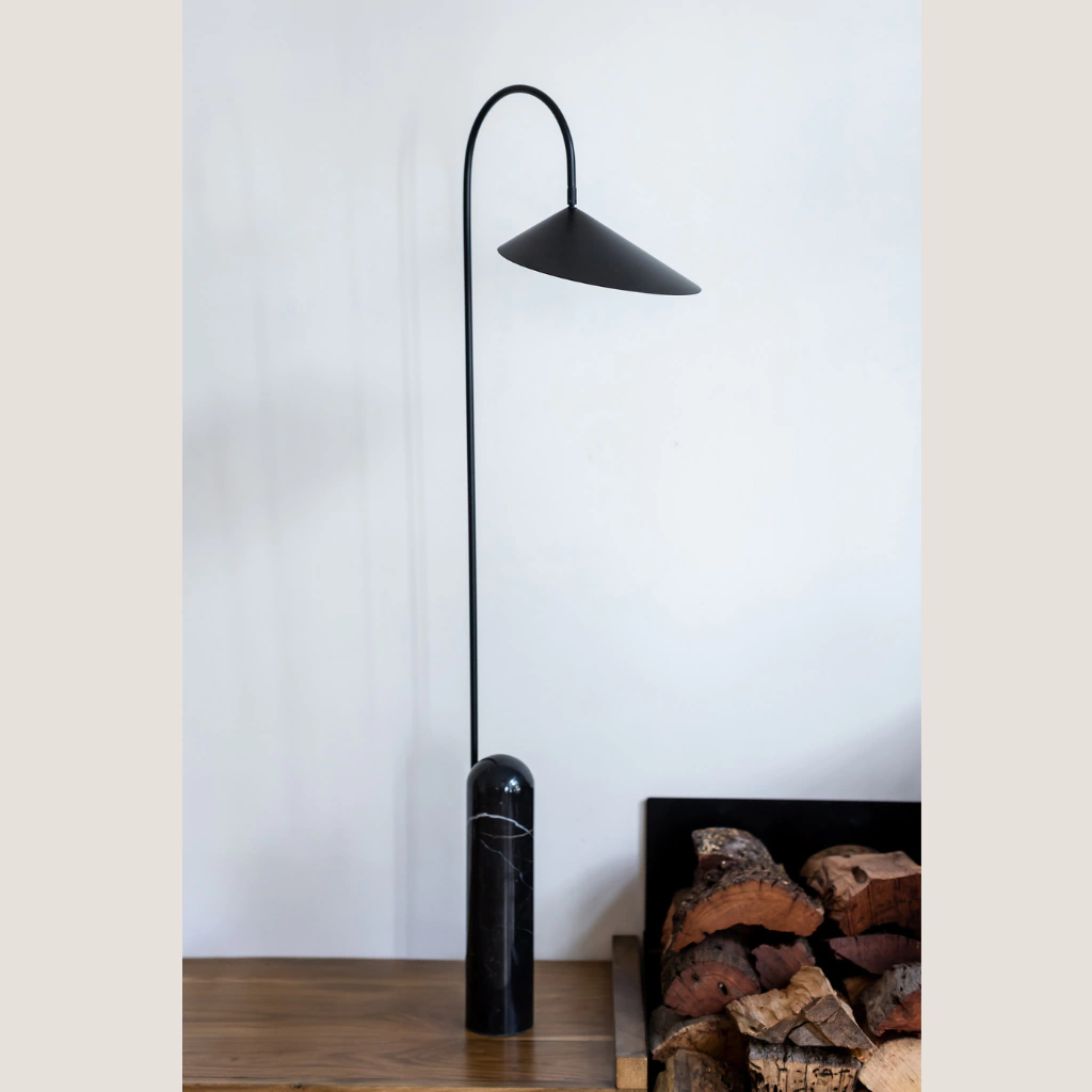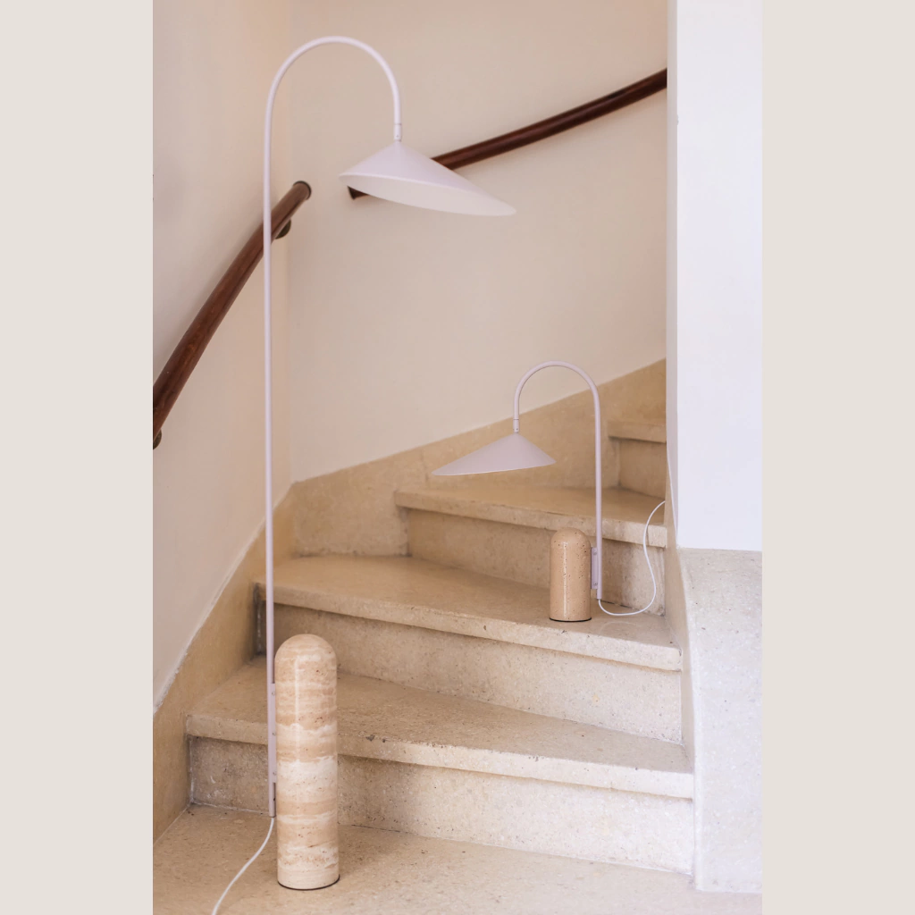 Este Pie pertenece a la familia SIENA. Se caracteriza por una base de mármol macizo, con una pantalla que hace alución a la forma de una hoja.