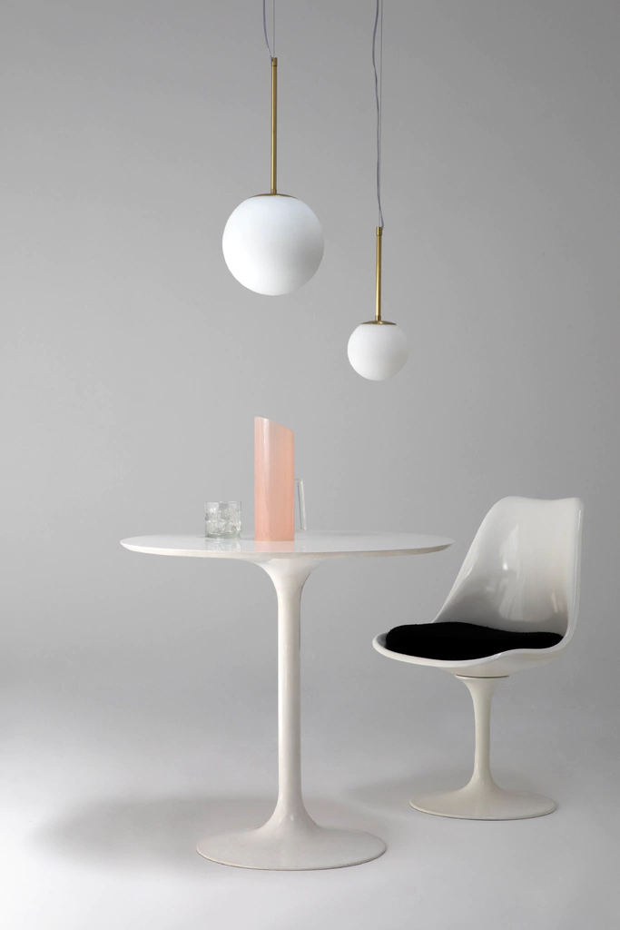 Colgante de 1 luz suspendido de estructura metálica + tulipa de vidrio opal o transparente.