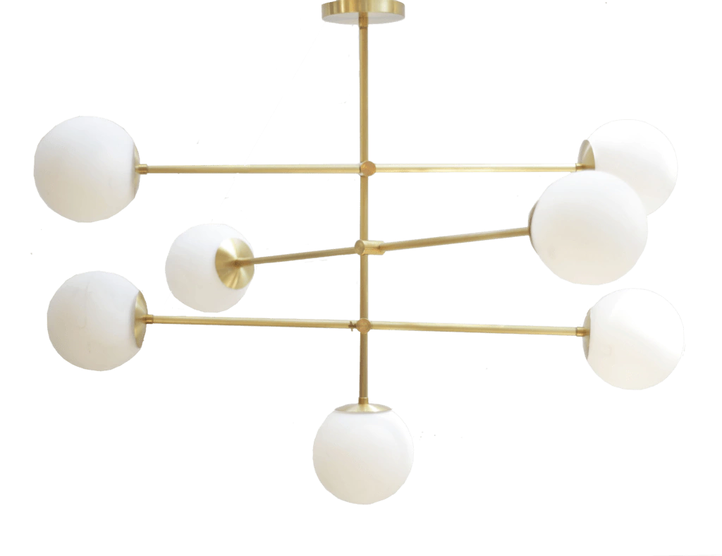 Colgante de hierro de 7 luces con tulipas de vidrio opales o transparentes de 15cm. Pintada en horno. Color a elección.