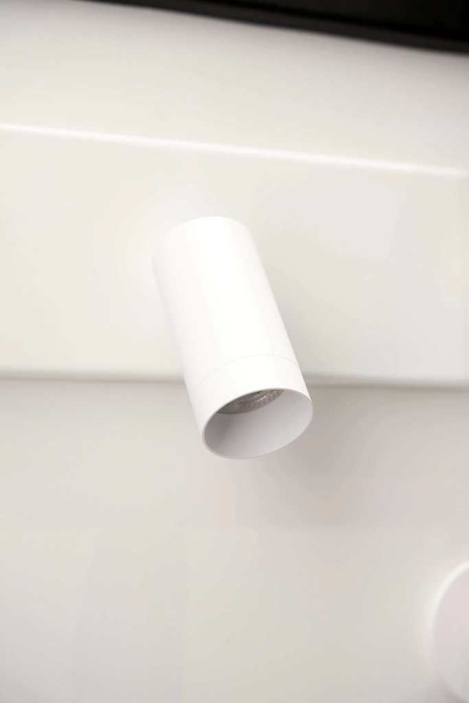Spot orientable de bajo brillo. Apto dimmer GU-10. Alto control de deslumbramiento. Proyección de luz directa-simétrica. Estructura construida en aluminio.