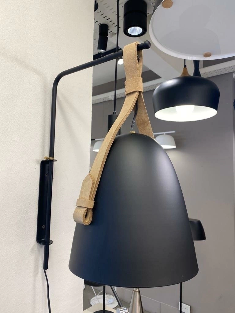 Aplique de hierro fundido pintado al horno con detalle de cinta de cuero.
