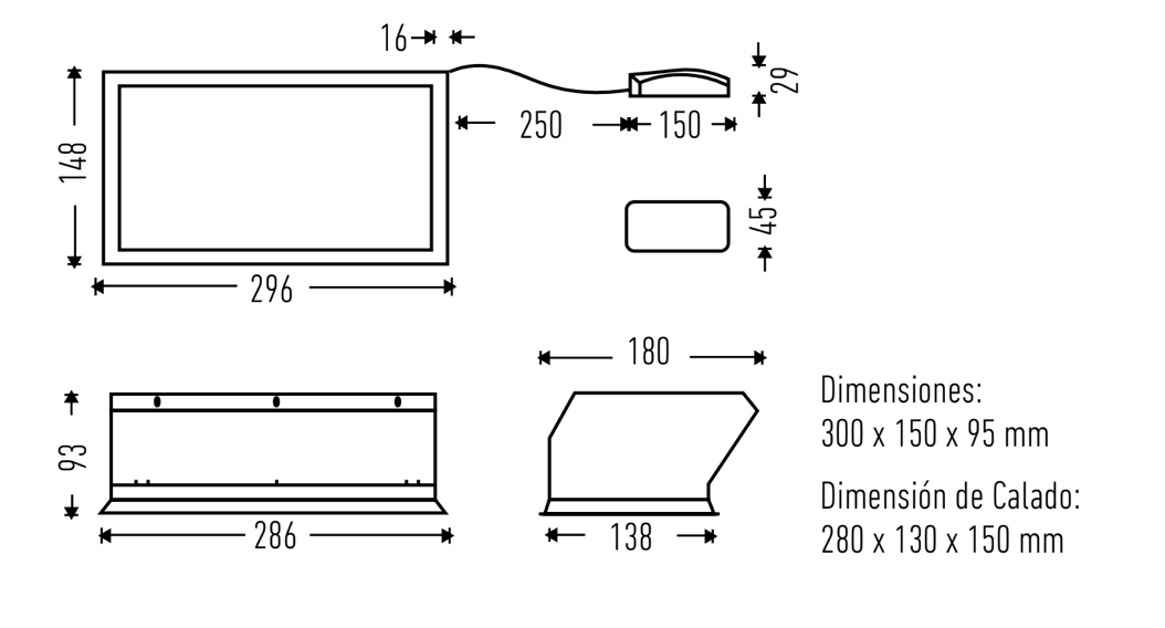 Luminaria Cielo con LED integrado para embutir. Incorpora control Smart mediante app Tuya. Cuenta con luz directa asimétrica (haz inclinado 45°)